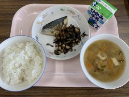 6/16 ごはん、牛乳、サバのごまだれ、ひじき豆煮、とうふのみそ汁