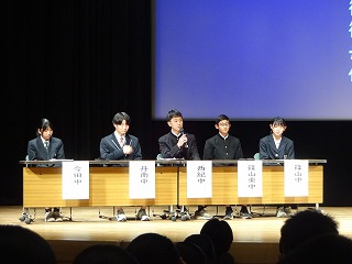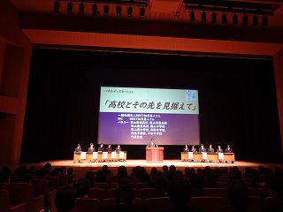 市内3高校の高校生による学校紹介と「高校とその先を見据えて」をテーマにパネルディスカッションが行われました。
