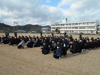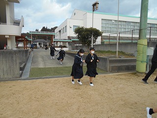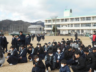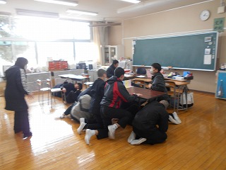 1月14日(水)、昼休みの時間に事前通告なしの避難訓練を行いました。地震を想定し、緊急事態に慌てず、落ち着いて適切な行動がとれること、被害を受けない、被害を大きくさせないように「行動に移す」ことがねらいです。今回は、昼休みの時間帯で、場面や状況に応じて、身の安全を確保し、自分で避難経路を選択、判断し、行動に移すことが大切でした。