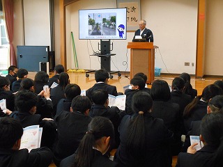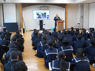 4月15日(水)、5校時、交通安全指導を行いました。今年は、篠山警察署河内駐在所から巡査部長に来ていただき、交通ルール、命を守るために大切なこと、自転車の運転は被害者だけでなく加害者になる可能性もあることなど、話を聴きました。その後、自転車点検を行いました。1年生の自転車実施訓練は、雨天のため、24日(金)に行います。