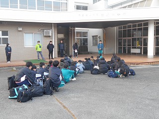 1月14日(水)、昼休みの時間に事前通告なしの避難訓練を行いました。地震を想定し、緊急事態に慌てず、落ち着いて適切な行動がとれること、被害を受けない、被害を大きくさせないように「行動に移す」ことがねらいです。今回は、昼休みの時間帯で、場面や状況に応じて、身の安全を確保し、自分で避難経路を選択、判断し、行動に移すことが大切でした。